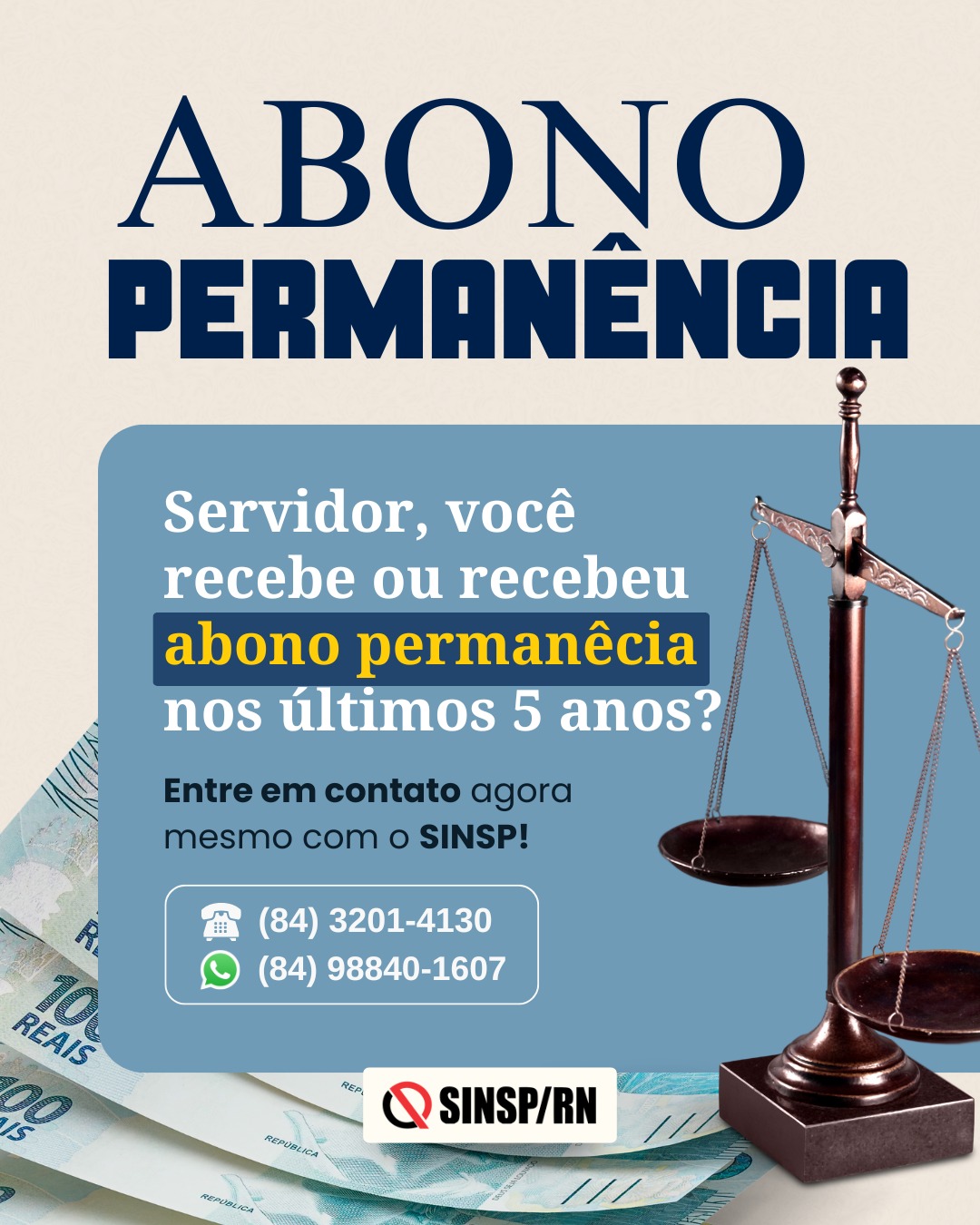 Home»SINSP»ABONO PERMANÊNCIA: recebe ou recebeu nos últimos 5 anos? Assessoria jurídica do SINSP prepara ação