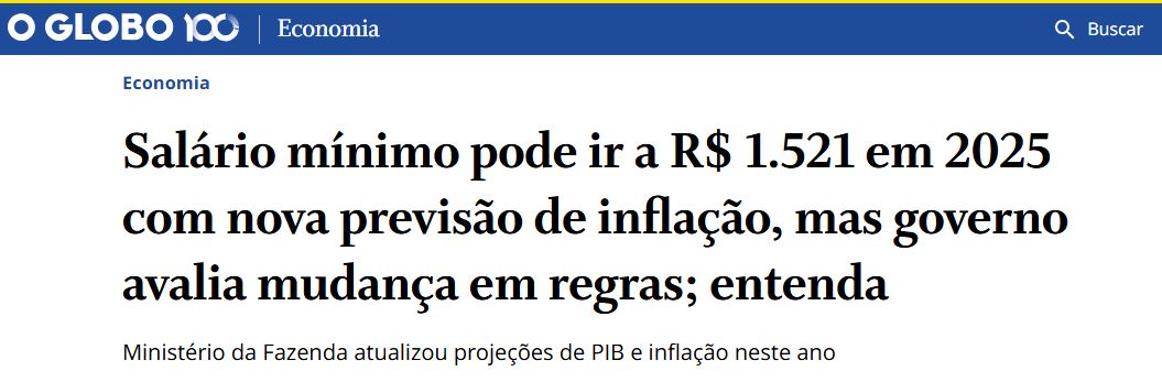 Já o governo federal prevê salário mínimo de R$ 1.521,00 a partir de 1º de janeiro de 2025.
