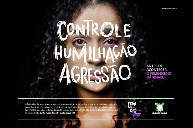A Assembleia Legislativa do Rio Grande do Norte deu início nesta quarta-feira (29) a campanha publicitária com alerta quanto aos perigos de uma relação com traços que podem evoluir a um feminicídio, como ciúmes e controle excessivo; humilhações; agressões verbais e físicas; abusos físicos e psicológicos e o último, atentado à vida da mulher.