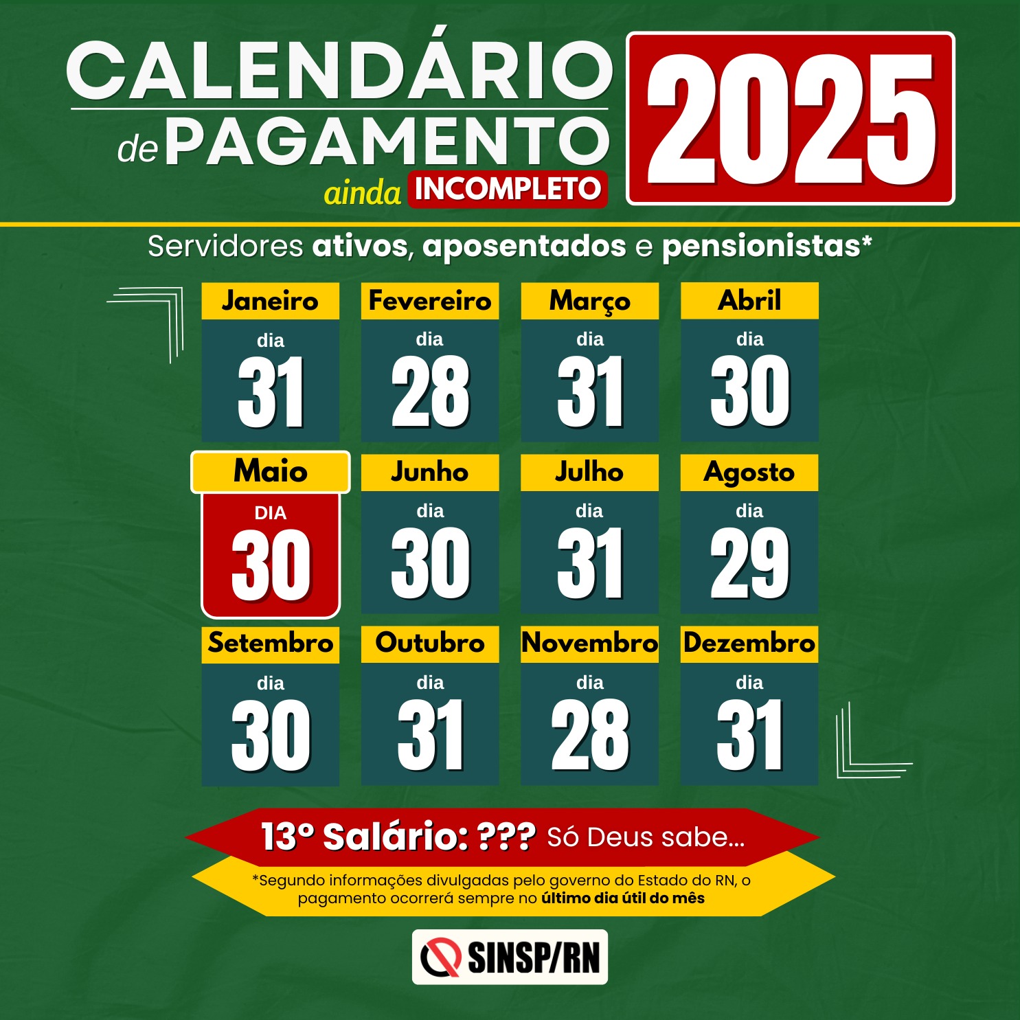 Desde o dia 26 de dezembro de 2024 que o SINSP cobra do governo a divulgação do calendário de pagamento dos servidores de 2025 contendo as datas do 13º salário.