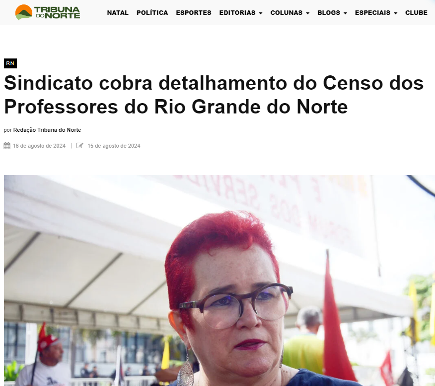 A luta do SINSP para que o Estado divulgue os dados detalhados do Censo da Educação 2024, após três meses de seu fim, foi destacado pela edição desta sexta-feira (16) do jornal Tribuna do Norte.