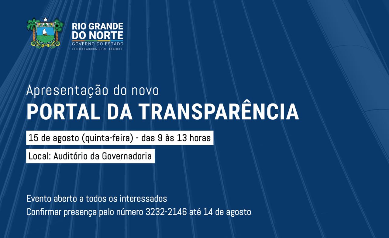 O Portal da Transparência RN, no seu novo formato, está disponível desde o último dia 08 de agosto trazendo maior confiabilidade nos dados e apresentando um layout mais interativo e dinâmico, facilitando as consultas por parte do cidadão. Os interessados em participar da apresentação do novo Portal da Transparência deverão confirmar a inscrição através do telefone (84) 3232-2146 até a próxima quarta-feira (14/08).