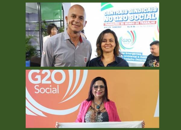 Dirigentes da Confederação dos Servidores Públicos do Brasil – CSPB participaram ativamente das discussões e debates ocorridos no encontro internacional G20 Social, realizado no Rio de Janeiro. Estiveram no evento do Diretor Jurídico da CSPB, Eduardo Maia; a Diretora de Assuntos do Ministério Público, Fanny Melo e a Diretora de Política Ambiental e Economia Sustentável da CSPB, Joelísia Feitosa.