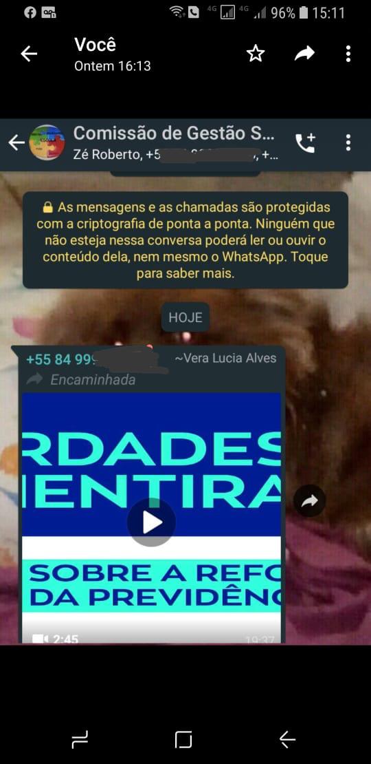 Uma diretora do SINTE-RN tem usado um grupo institucional da SEEC para fazer papel do Governo e propagar vídeos em defesa da reforma da Previdência estadual. O vídeo mostra a reforma de forma positiva, mente ao dizer que o Governo só tem até dia 31 de julho para aprová-la e diz que a reforma não é injusta para os servidores. Imagine professores sendo taxados por irresponsabilidade política frente à Previdência. Isso é justo?