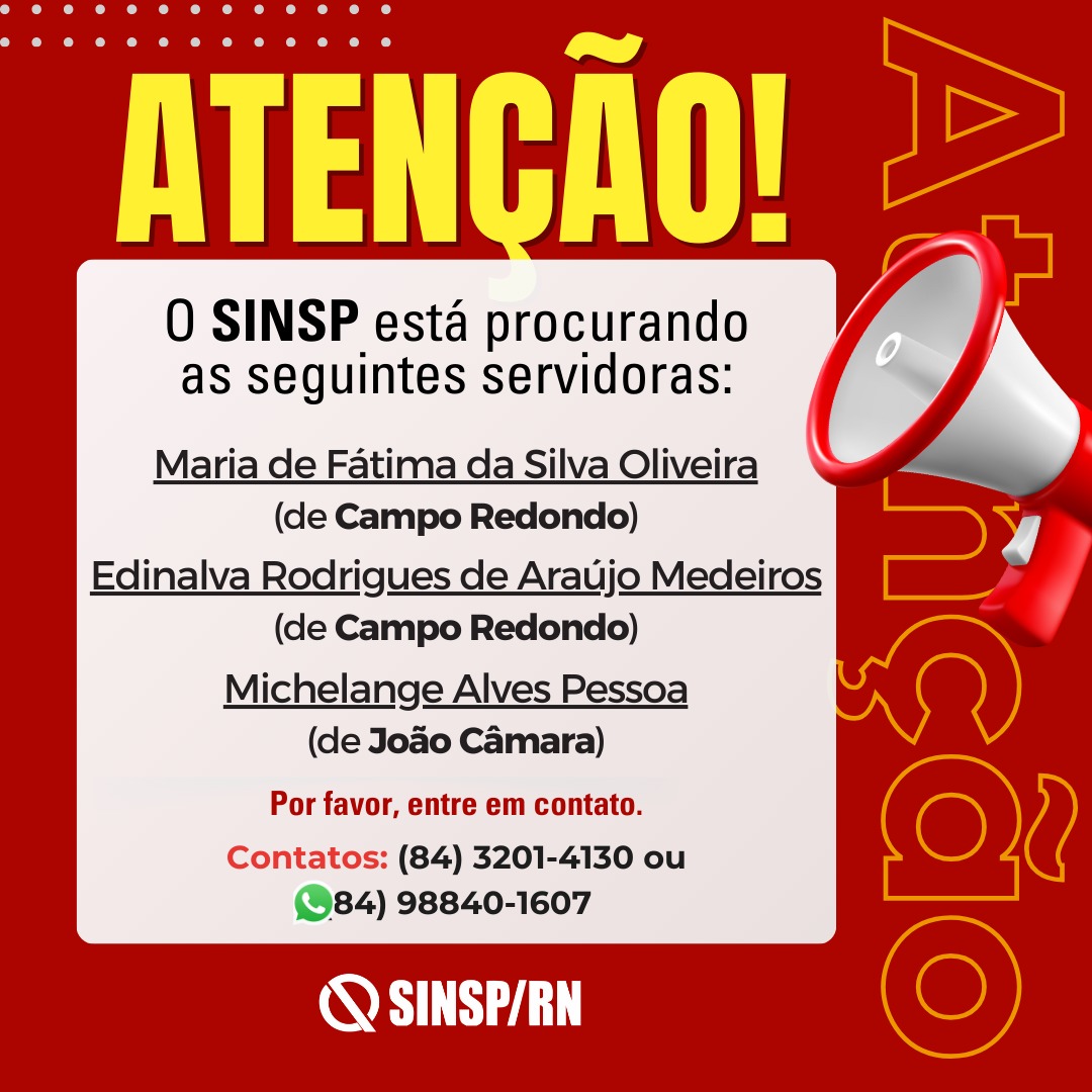 Por favor, caso você conheça alguma dessas servidoras do Estado, informe que o SINSP está a sua procura:
