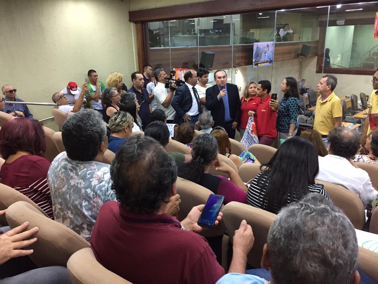 Servidores públicos estaduais estiveram presentes na Assembleia Legislativa do Rio Grande do Norte na manhã desta quarta-feira (06), ocasião em que foi realizada a leitura da matéria que amplia o reajuste de 16,38% a todos os servidores do estado. A votação da emenda está prevista para acontecer amanhã, quinta-feira (07), junto ao projeto de lei encaminhado pelo governo que prevê o aumento apenas para os procuradores.