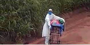 Uma enfermeira que acompanhava dentro de uma ambulância tomou uma atitude drástica para garantir a transferência dele para um hospital: percorreu cerca de dois quilômetros de um trecho sem asfaltamento da rodovia Transamazônica empurrando o homem em uma maca.