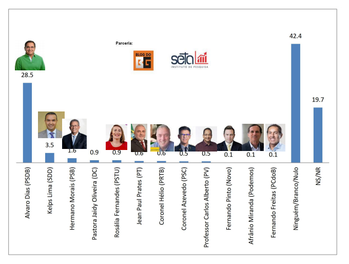 A primeira pesquisa eleitoral de 2020 para prefeitura de Natal do Blog do BG/Instituto Seta aponta que o deputado Hermano Morais, que é A FAVOR da reforma da previdência, traindo o voto dos servidores, tem apenas 1,6% de intenção dos votos, na pesquisa estimulada. Já o deputado Kelps Lima, CONTRÁRIO a reforma tem mais que o dobro da intenção, com 3,5%.