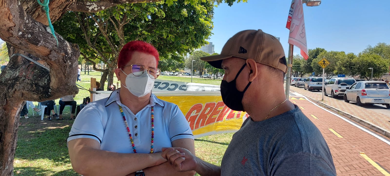 A presidenta do SINSP, Janeayre Souto, esteve no ato dos funcionários do Detran que estão em estado de greve desde o dia 2 de setembro. Os trabalhadores estão em frente à governadoria aguardando contraproposta de suas demandas por parte do governo.