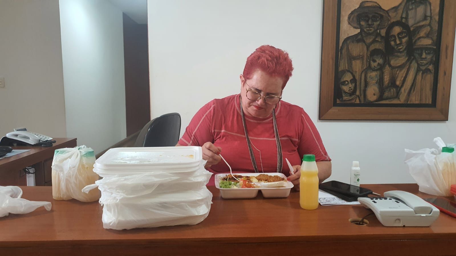 A presidenta do SINSP fez sua primeira refeição na governadoria à espera do cumprimento do acordo prometido pelo governo. Janeayre está acampada junto a assessoria jurídica para cobrar o envio do processo para o Tribunal de Justiça.
