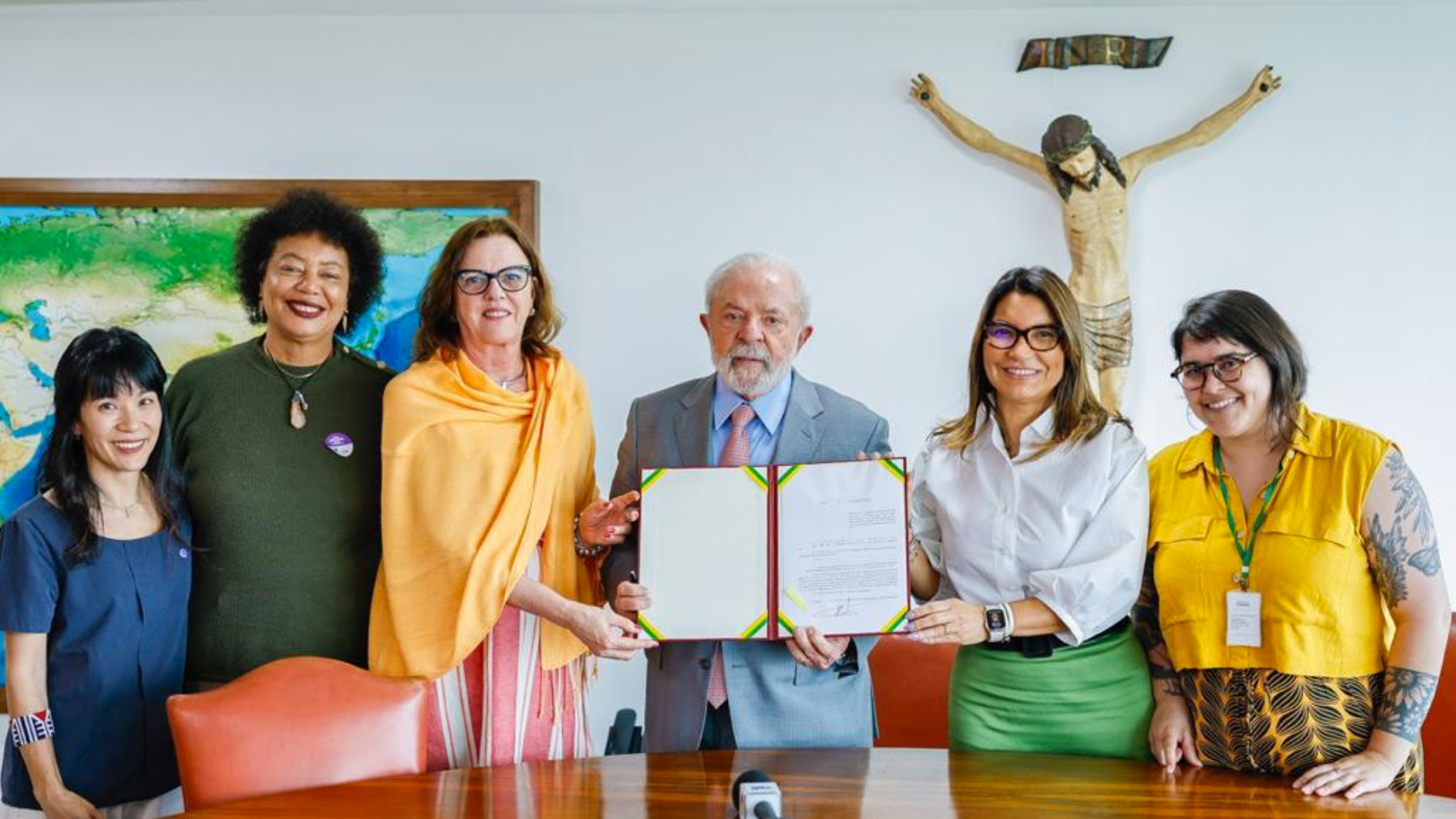 “Sancionei, ao lado de representantes do Ministério das Mulheres e de Janja a lei que garante o auxílio-aluguel para mulheres vítimas de violência doméstica. Importante apoio para a proteção das mulheres e para romper o ciclo de abusos. O governo federal está comprometido com a vida das mulheres”, disse o presidente pelas redes sociais.