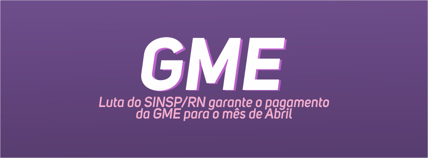 A GME é uma conquista dos servidores da educação e alcançada com muita luta e deve ser cumprida e respeitada! É importante lembrar que a GME é uma gratificação paga aos funcionários lotados nas escolas do Estado nos meses de fevereiro, abril, agosto e outubro. O SINSP/RN está sempre acompanhando e cobrando ao longo de todo o ano, para garantir a implantação e o pagamento da GME no contracheque dos servidores da educação.