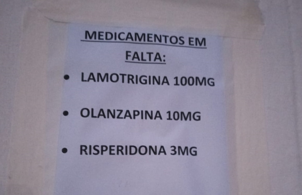 Pacientes de tratamentos psiquiátricos denunciam a falta de pelo menos três medicamentos no Hospital João Machado, em Natal. Os medicamentos Olanzapina e Lamotrigina e Risperidona são usados no tratamento da esquizofrenia, transtorno bipolar e para episódios de convulsão.
