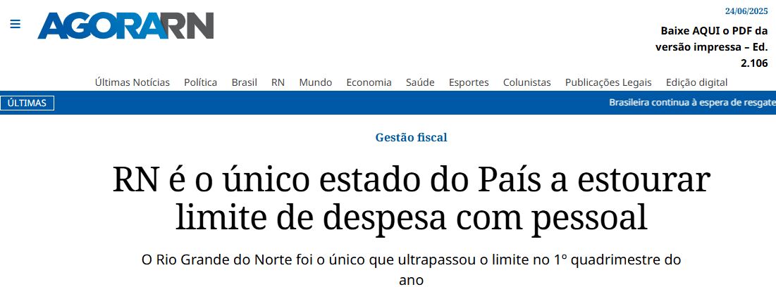 Segundo relatório do Tesouro Nacional divulgado nesta segunda-feira (23), o Estado é o primeiro entre todos do país no ranking de gastos percentuais com pessoal.