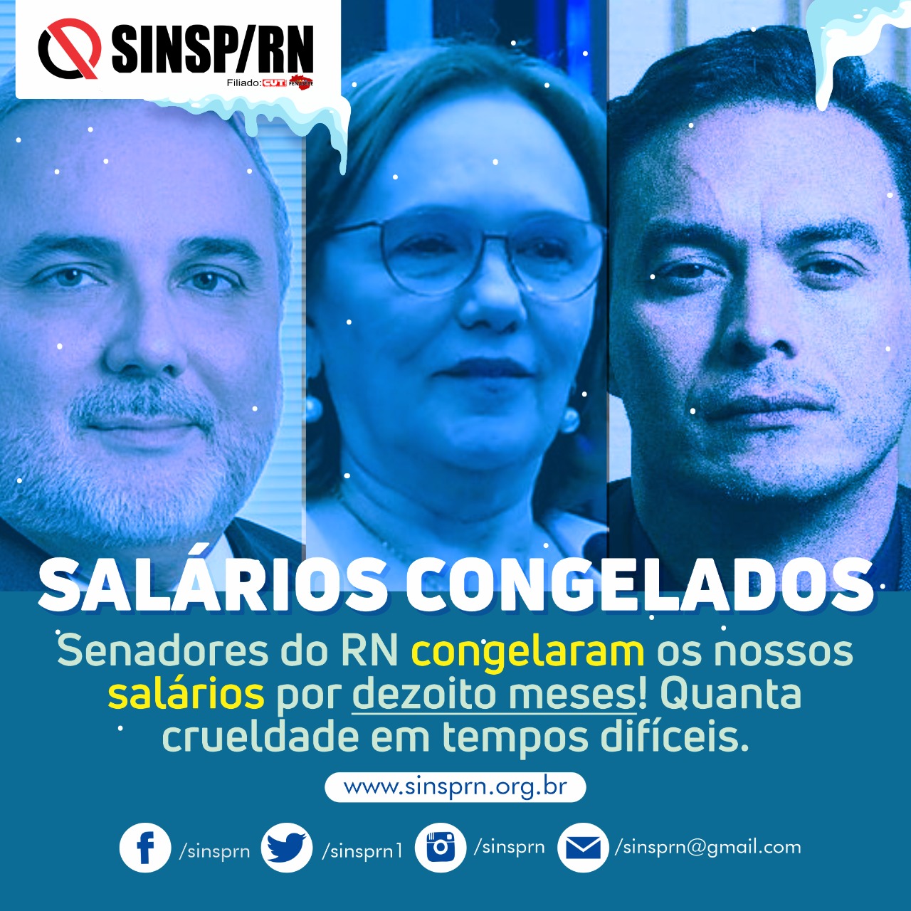 O Sindicato dos Servidores Públicos do Rio Grande do Norte expressa sua profunda indignação ao congelamento nos salários, na certeza de que a suspenção de reajustes dos que diariamente movimentam os setores mais básicos do estado não é a via essencial de combate à pandemia, da qual também queremos sair.