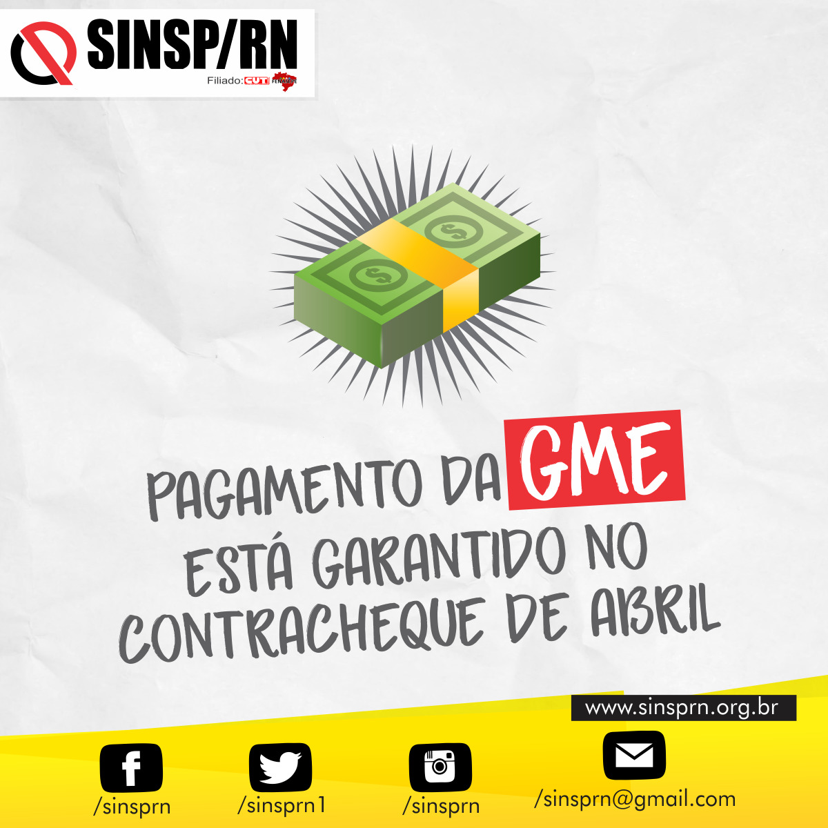 O Sinsp/RN recebeu a informação que alguns servidores que NÃO RECEBERAM a GME, no contracheque de abril.