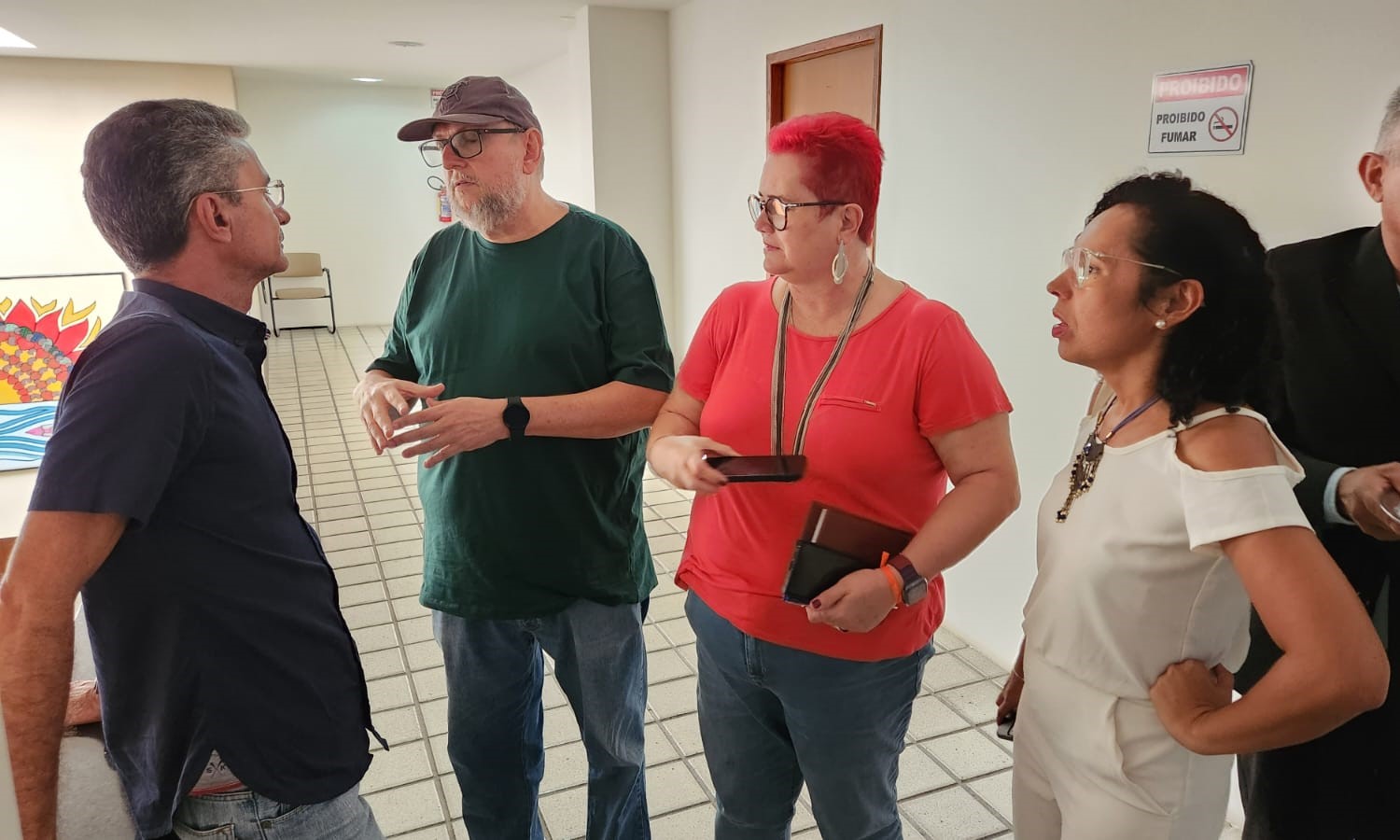 Ao sair de audiência com o secretário-adjunto do Gabinete Civil, Ivanilson Maia, nesta sexta-feira (10), a presidenta do SINSP conversou com o líder do governo na Assembleia Legislativa, deputado Francisco do PT, e a deputada Divaneide Basílio.