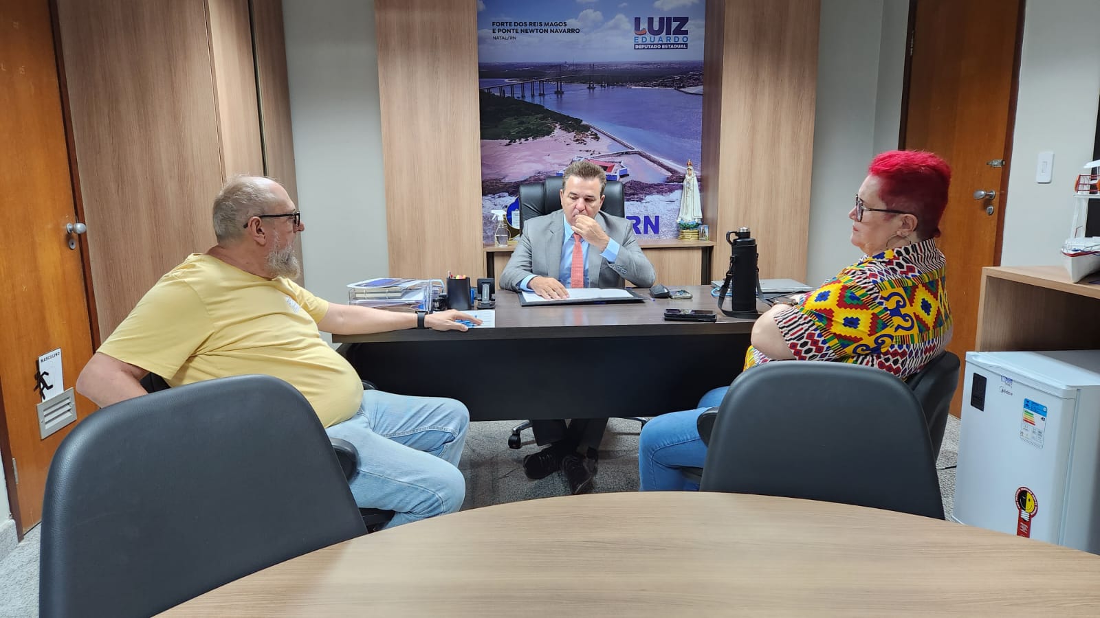 A presidenta do SINSP foi recebida pelo deputado Luiz Eduardo (Solidariedade), que preside a Comissão de Administração, Serviços Públicos, Trabalho e Segurança Pública, na manhã desta quinta-feira (09).
