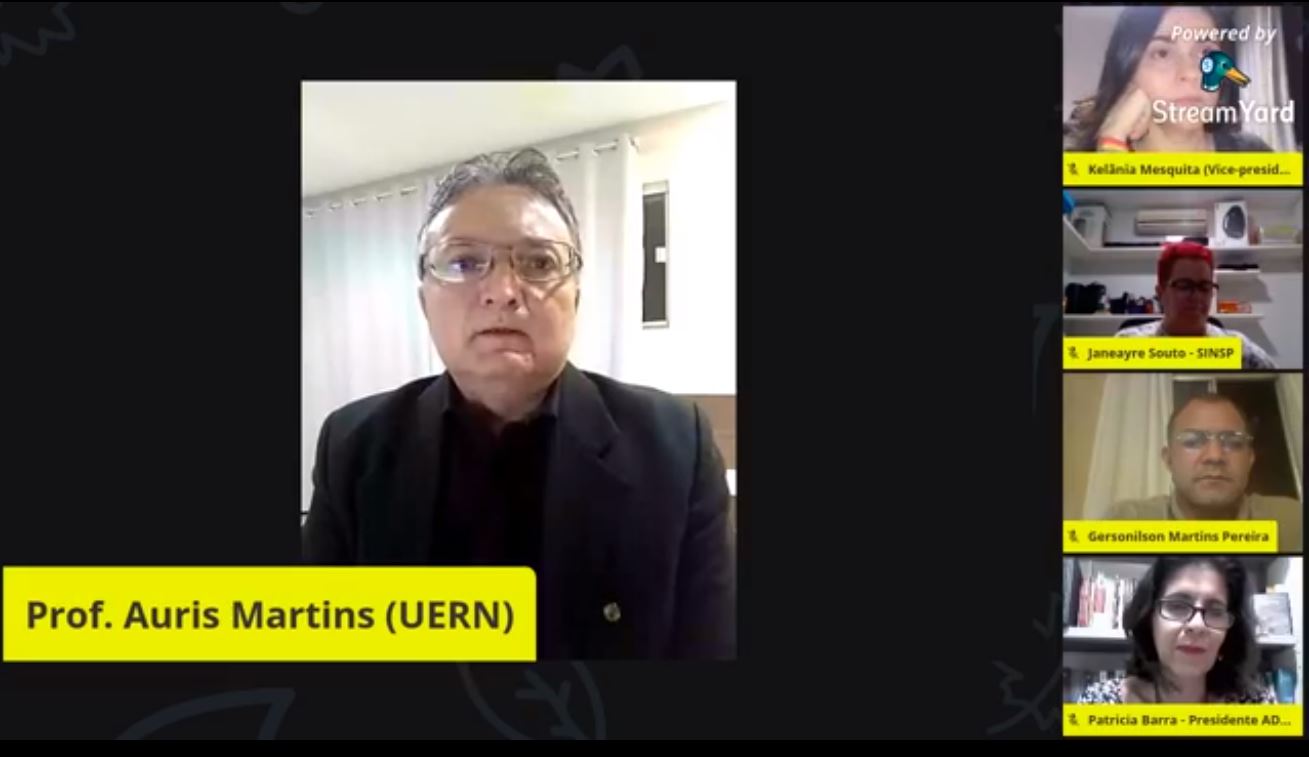 O professor da UERN, Auris Martins, apresentou os resultados obtidos no seu estudo sobre o impacto social ocasionado a partir dos atrasos salariais na vida dos funcionários públicos do Estado do RN. A apresentação aconteceu numa live do Fórum dos Servidores, nesta quarta-feira (21) e contou com a presença de lideranças sindicais do SINSP, ADUERN e SINDJUTIÇA.