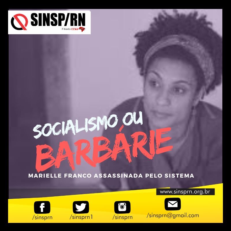 O Sinsp/RN vem deixar sua mensagem de solidariedade, ao país que ficou órfão de mais uma defensora dos direitos humanos, das minorias, das mulheres. Marielle é assassinada no mês dedicado à Luta das Mulheres, no mês onde dizemos com mais força o quão é difícil ser mulher no Brasil.