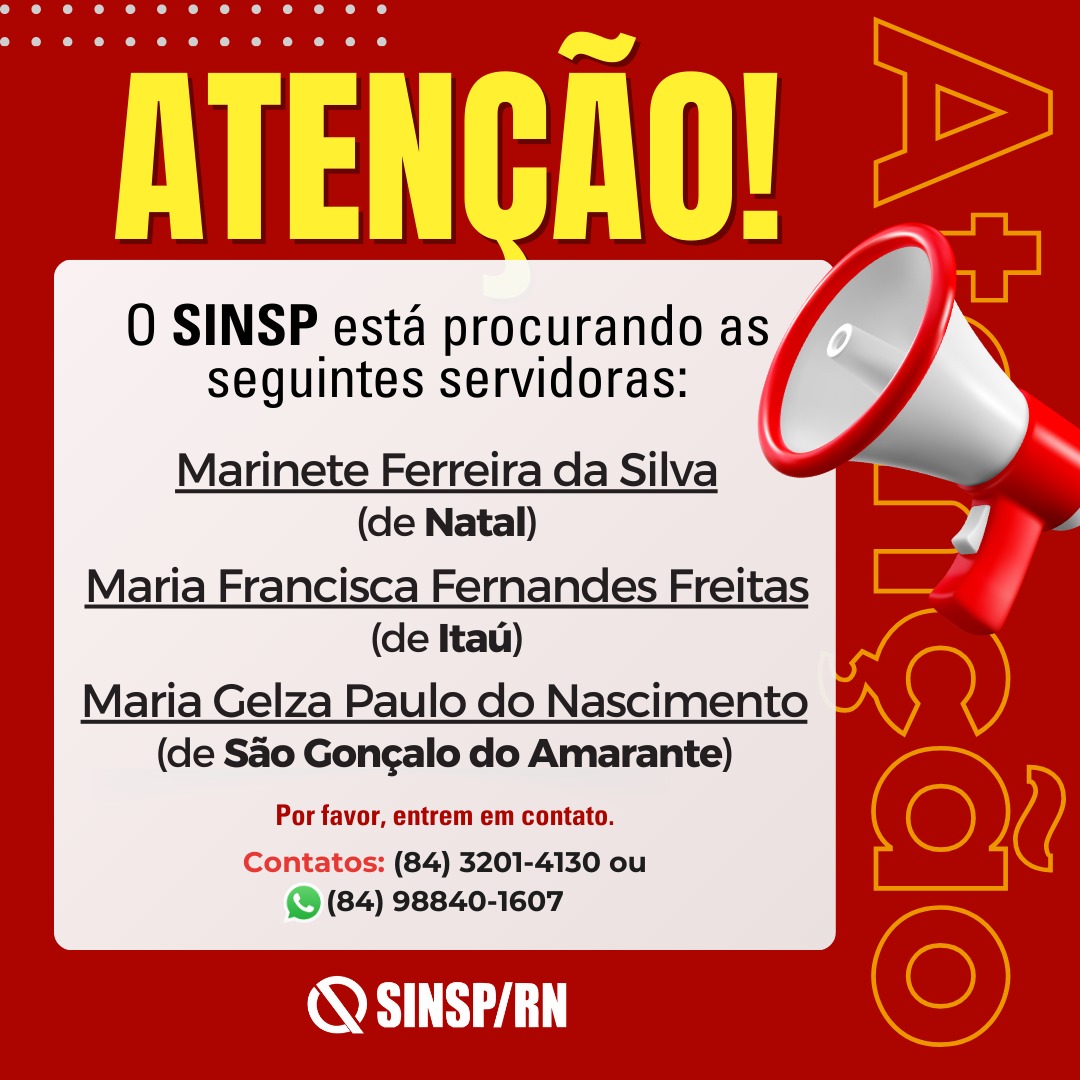 Servidores, se você conhece alguma dessas servidoras, comunique que o SINSP está a procura de seus contatos.