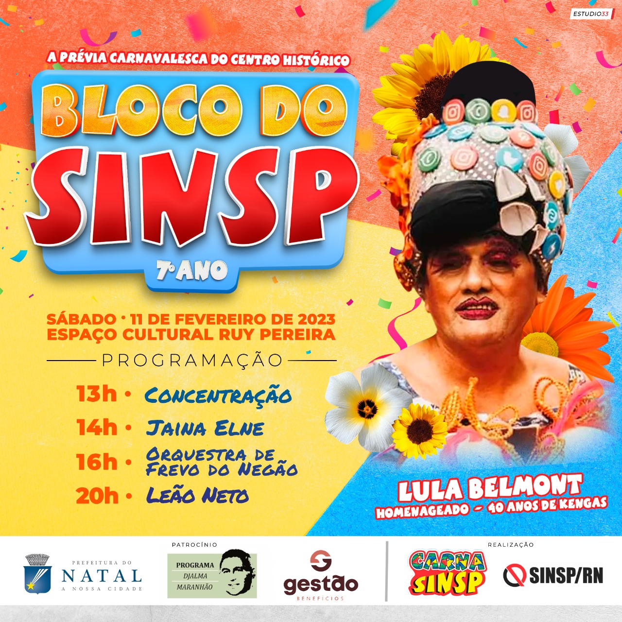 O homenageado desse ano é o criador de um dos maiores e mais democráticos blocos de Natal, as Kengas: Lula Belmont, será lembrado pelos 40 anos do bloco que revolucionou as festas de rua na nossa cidade.